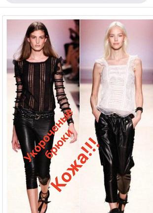 Стильные кожаные Капри,состояние новой вещи. В носке были 1раз. Очень хорошо выделанная кожа. Все бирки на месте Фото на теле нет. Размер 38 Меряйтесь по замерам. Подкладка есть(фото) Длинна 76 Шаговый шов51 Пояс40 Пройма спереди 25 Пройма сзади 31 Бёдра 48 Штанина Низ бедра 27 Колено20 Замеры сделаны в спокойном состоянии Можно добавить см2 в натяжке,кроме пояса Без дефектов,кожа в идеальном состоянии. Состав: Кожа Доставка: 🚌-доставка укрпочта и нп безопасной оплаты нет