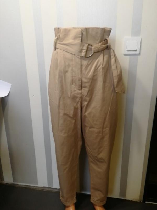 Модные брюки с высокой посадкой, размер 42, Катон 98. Есть такие же черные 40 размер. Замеры на черные.ПОТ 40, длина 97, ширина штанины в упаковке ПО 30, колено 24, низ 16