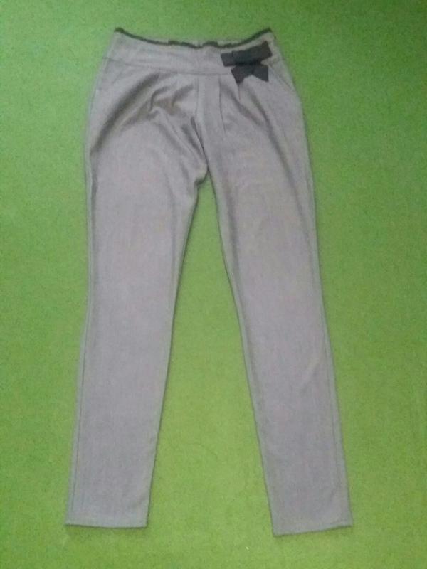 Брюки модные. Одевались мало. Сбоку молния. Спереди два кармана. Внизу заужены.