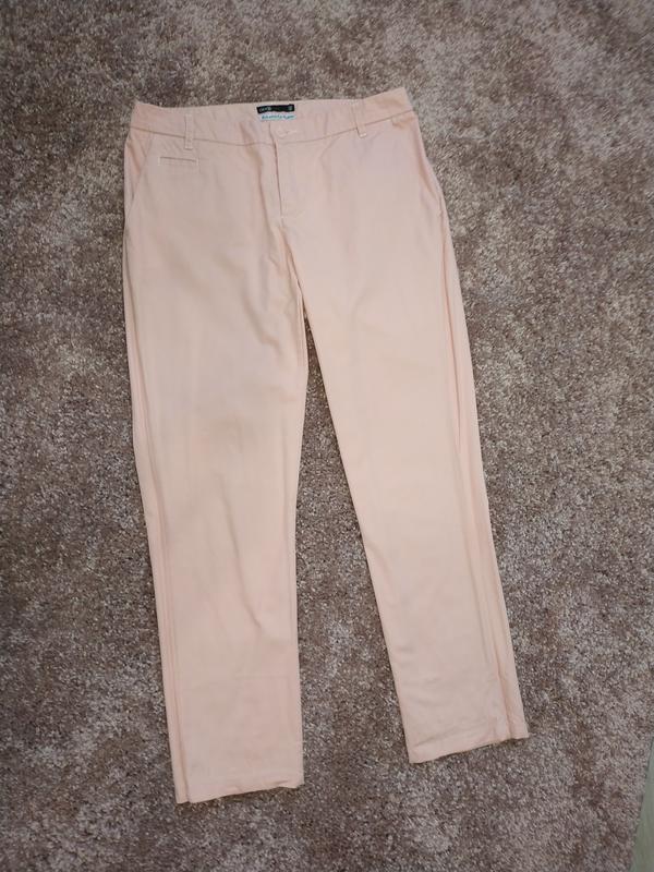 Лёгкие летние штаны персикового цвета. Размер М. Состав материала: 98% хлопок, 2% ПУ. Ткань не стрейчевая. В подарок к брюкам дарю ремень (можно увидеть на последнем фото). Обхват талии 80см (садится чуть ниже линии талии). Обхват бедер 101см. Длина по внешнему шву 89,5см.