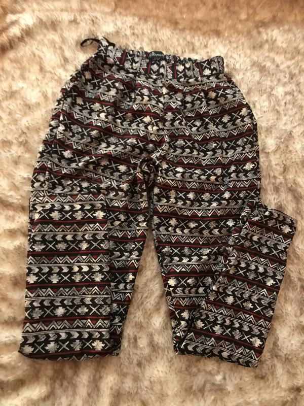 Леrкая ткань, высокая посадка, к низу заужены. Сбоку карманы.