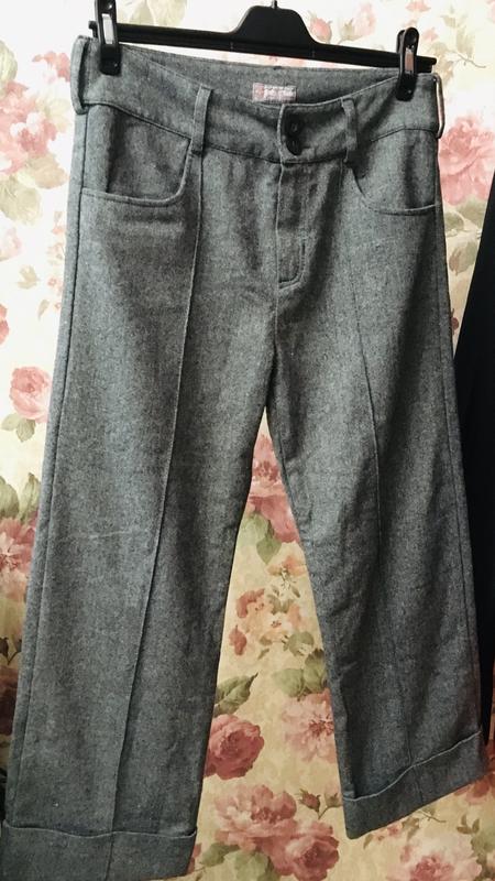 Стильные брюки кюлоты премиум качества, придадут уверенности своей избраннице. Тренд сезона с прямыми полосками и защипами внизу ,хорошо сидят на фигуре. Из 100% шерсти , поэтому в них комфортно и тепло в холодное время. Размер: М ПОТ-42 см ПОБ-54 см Длина -96 см По внутреннему шву-69 см