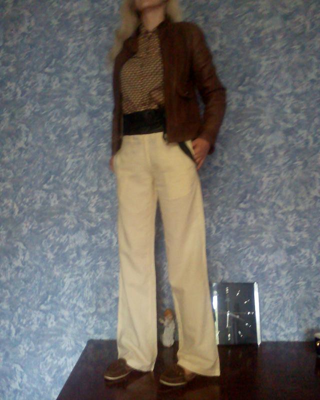 Брюки кюлоты лен ,широкие.Ткань тонкая, имеет желтоватый оттенок.