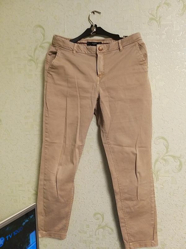 Классные брюки,фасон удачный,красиво на фигуре смотрятся,я чуть похудела-большие стали ,в отличном состоянии)Песочный красивый цвет,телефон всё возле да около ходит,и не хочет настоящий цвет показывать😆длина 92(с вот этим подворотом),пояс 39,посадка перед 28,зад 32,бедра 48,низ 16,вобласти колен 21)Отправка Новой почтой после оплаты на карту