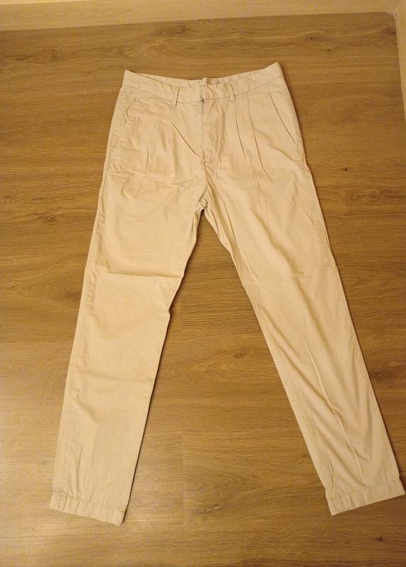 Демисезон/лето простые и практичные, посадка стандартная (29см), зауженные к низу(15,5 см) светло-серые тонкие хлопковые;р-р 38, замеры:ПИТ 39см,длина-98см,внутр.шов шаг 72см.Без дефектов