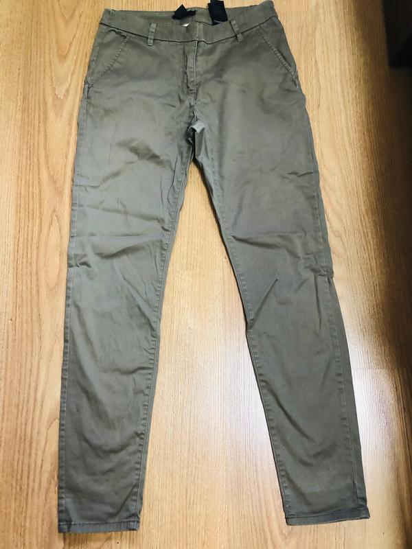 Повседневные брюки H&M цвет хаки средняя посадка