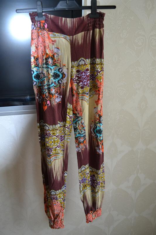 Продам идеальные на лето брюки.Внизу манжет и пояс на резинке,стан новых. Длина 101,резинка по талии полу обхват 30,ПОБ 56.Ткань очень приятная, тягучая и легкая