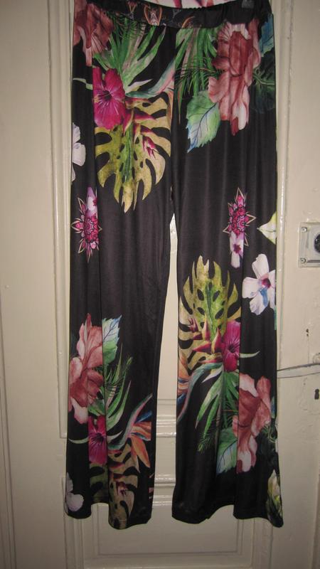 брюки цветные.полиэстер.ПОТ 32.ПОБ 58.на резинке.длина 96.шаг 75ширина по низу 36.Италия