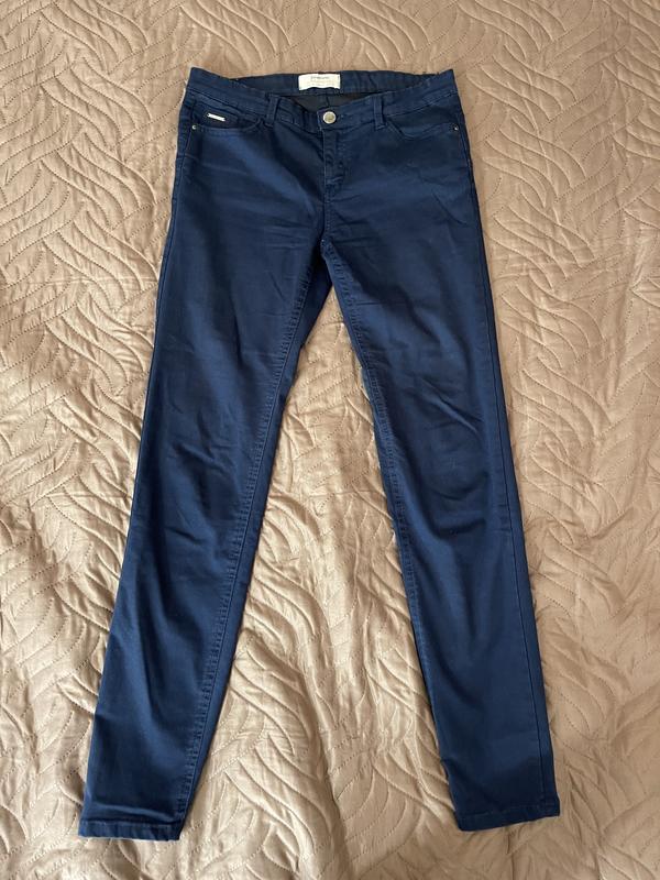 Темно-синие брючки из плотного котона. Размер М. Длина 99 см Полуобхват талии 38 см Полуобхват бёдер 44 см