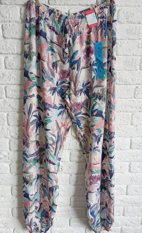 Штани Primark в наявності розмір S: довжина 103см, кроковий 77см, талія 36см( тягнеться), стегна 54-55см.Тканина 100%віскоза