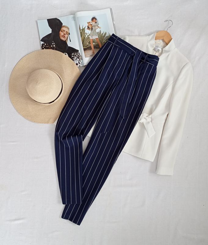 Сині штани в смужку від TU з поясом і бічними кишенями, розмір М, ширина поясу 37 см, стегон 53 см, довжина 100 см