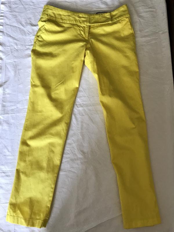 Брюки бренда Bovona, отличного качества, цвета солнца в отличном состоянии . Посадка заниженная. Ткань плотный Катон. Длина - по щиколотки ( мой рост 1,59), на Дюймовочку. Цвет на фото как в жизни, насыщенно желтый. Карманы впереди и сзади. Размер -xxs-xs