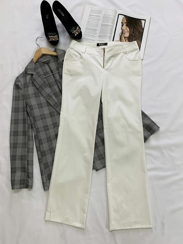 Размер производителя: 38 В поясе: 38-40 см ПОБ 47-51см Высота посадки по передку: 21 см Длина шагового шва: 81 см Длина: 102 см, можно расшить и удлинить на 5-7 см. Ширина штанины внизу: 23 см Материал: средней плотности, эластичный, глянцевый. Б/у в идеальном состоянии, с незначительным нюансом, бледная полосочка чуть выше колена.