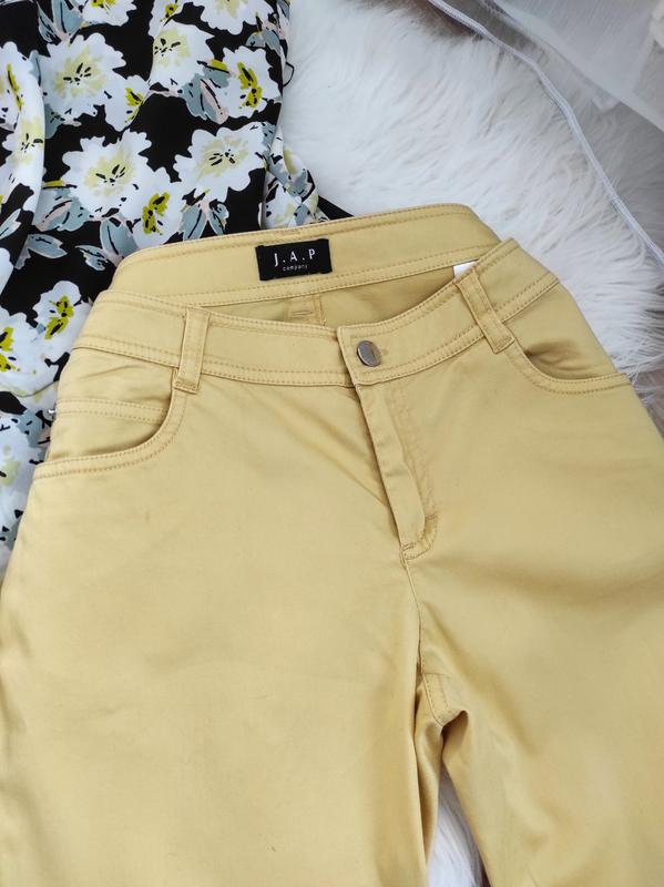 Крутые лёгкие штаны солнечного цвета Jap в отличном состоянии. Состав котон и эластан. Тянутся. Размер 34. Пожалуйста, учитывайте замеры. длина 100 посадка 20 внутренний шов 79 пояс 37 бедра 47 холоша 15,5