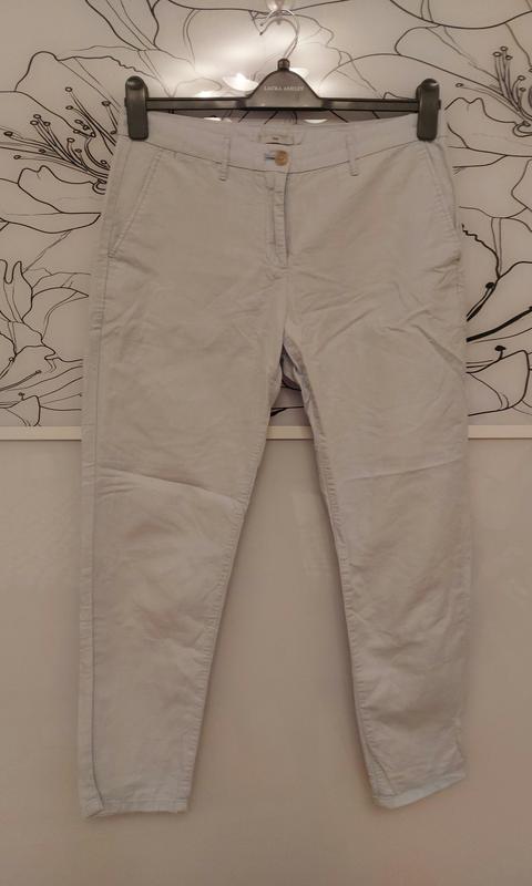 Брюки хлопок лен, красивый нежно голубой цвет, посадка средняя