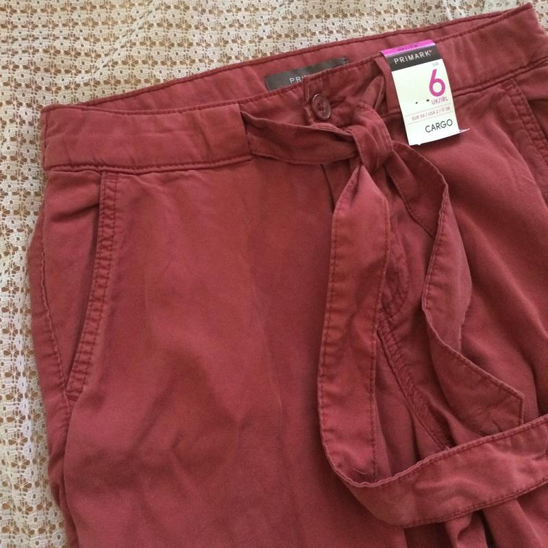 Стильные брюки карго тенсел Primark Новые, с этикеткой. 100% tencel - ткань из эвкалиптовой целлюлозы, обладает бактерицидным действием, тонкая и гладкая, чем напоминает шелк, почти не мнется. Стильный крой, по бокам карманы, зауженные. Цвет пыльной розы Пояс вшит по бокам Размер 6 евро 34 Длина 96см, шаговый шов 72см, штанина внизу 16см, ПОТ 36см, ПОБ 50см, посадка впереди 27см, сзади 36см