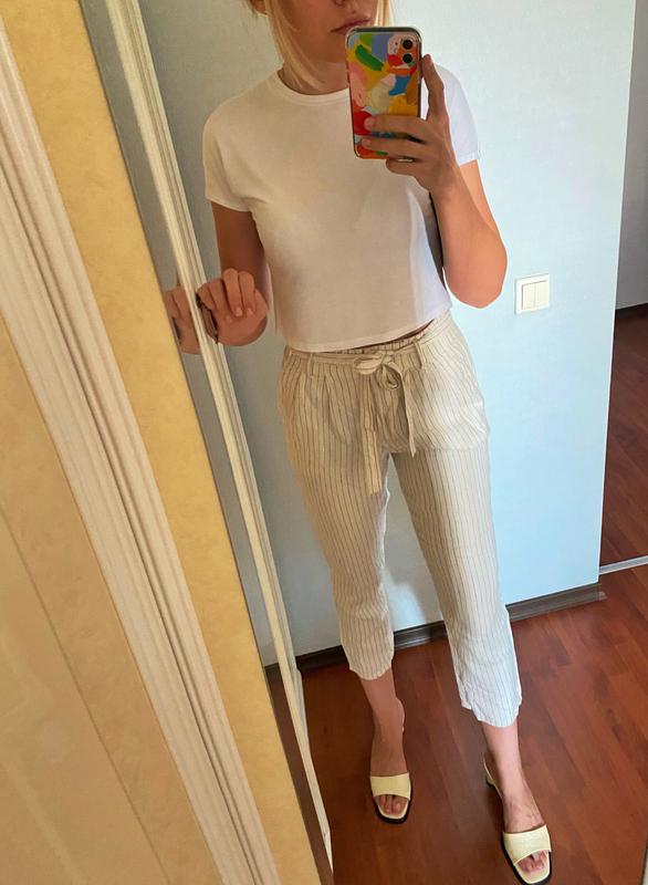 Льняные брюки Max&Co от Max Mara 😍высокая посадка. Поясок завязывается на талии и красиво подчеркивает фигуру 👌🏼 брюки укорочённые, свободного кроя