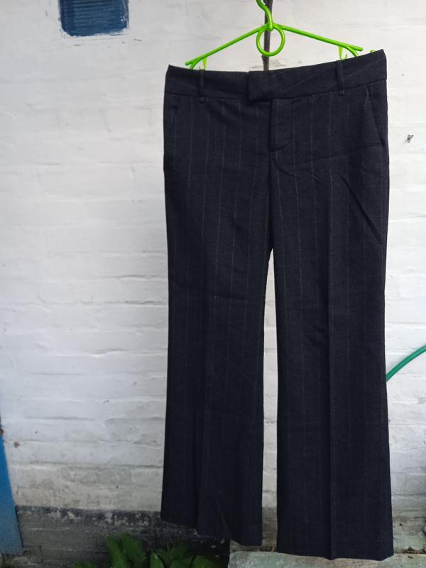 классические брюки серые в мелкую полоску,прямые, слегка клиш внизу, с карманами, на молнии и две застежки металл, длина 97,талия 80