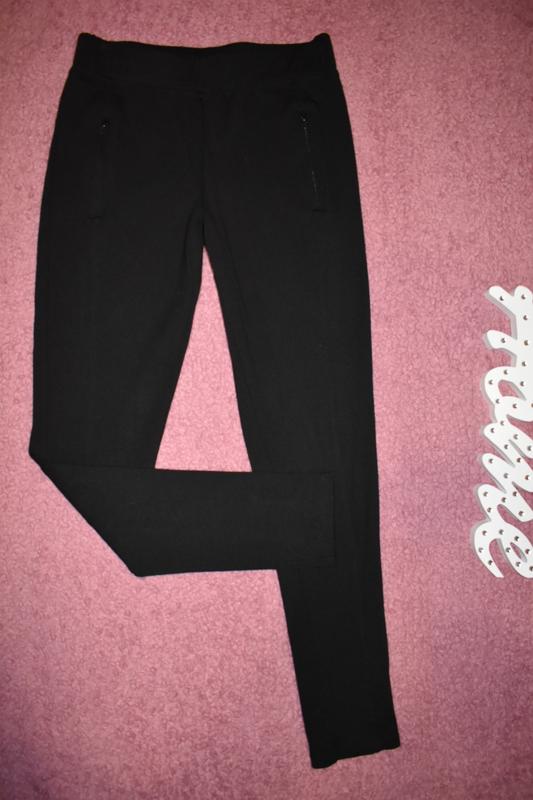 У відмінному стані, мінімальні сліди носіння, є катишки. Пояс гумка. Матеріал плотненький. Заміри Пояс 38 см, тягнеться до 48см; ПОБІДИ 46,5 тягнеться до 63див; посадка 28,5/30см ; довжина повністю 98см, ширина штанини внизу 12,5 див.