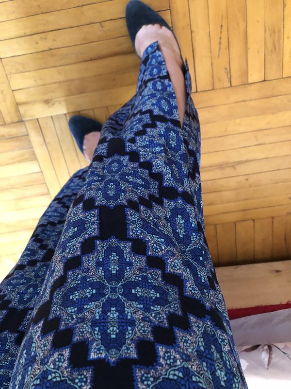 Легкие штанишки в идеальном состоянии. На фото одеты на М, подойдут на с, хс (должны быть свободными). Высокая посадка, внизу с разрезами Длина: 100 см Посадка 30 см Резиночка на талии 32 см (тянется и можно затянуть шнурочки) Бёдра 50 см Ширина штанины 27