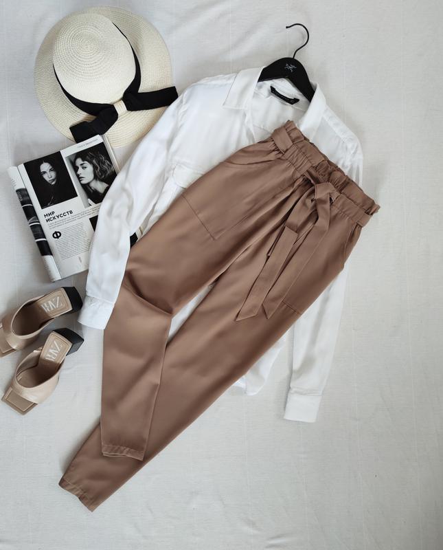 Легкі брюки високої посадки з поясом і кишенями, тканина поліестр, талія на резинці, розмір/M, ширина поясу 33 см, ПО бедер 50 см, довжина 98 см