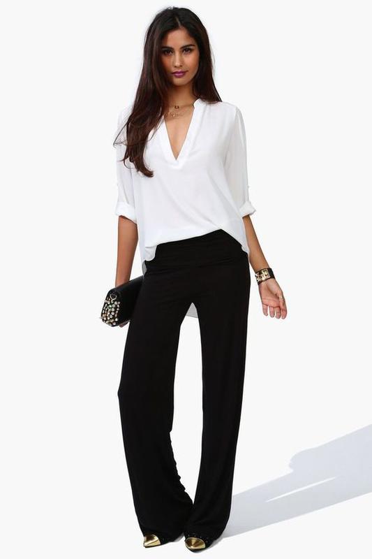 Стильные брюки-палаццо выполненные из хорошей ткани. Средняя посадка. Широкие брюки-клеш застегиваются на молнию и пуговицу спереди. Замеры :длина 95обхват в бедрах 105, обхват в поясе 74,ширина по низу 29см