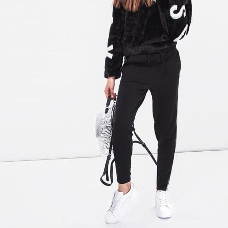 💢ШТАНИ 💢 ☆Виробник: "Jennyfer" ‼Зручні та стильні! Що ще потрібно?) Чорні штани ідеально підійдуть до взуття на підборах так і до білих кедів😍 ✔Розмір М-L ✔Колір: чорний з білою смужкою. ✔Тканина: поліестер 💰Ціна: 250 грн ✏Заміри: Довжина: 96 см ПОТ: 37 см ( на поясі резинка) ПОБІДИ: 50 см Висота посадки:30 см