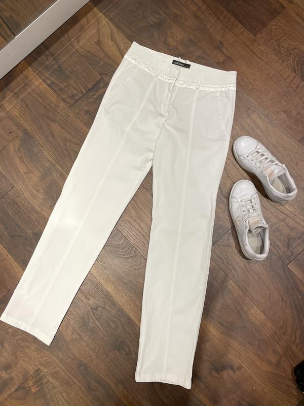 Идеально белые брюки, известного бренда Marccain. Состояние идеальное. ПОТ - 40 см ПОБ - 52 см Длина по внешнему шву - 103 см Длина по внутреннему шву - 80 см Слегка тянутся.