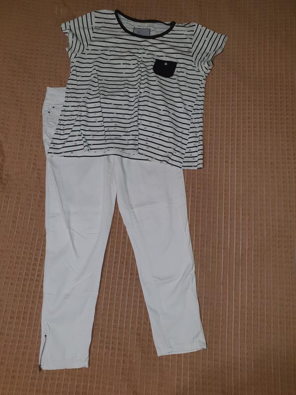 Белые фирменные брюки, со змеечками по низу.