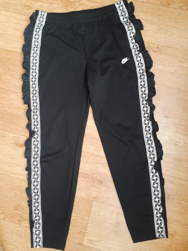 Брюки Nike. Модель прямого кроя. Детали: эластичный пояс на кулиске,декоративные рюши. Ш в поясе-40 см Дл по вн.шву-95 см Дл по внутр. шву-71 см