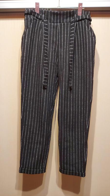 Теплі штани в полоску. Заміри: пояс 37см(є резинка, тягнеться до +- до 50см), вшитий пояс, довжина 89см.
