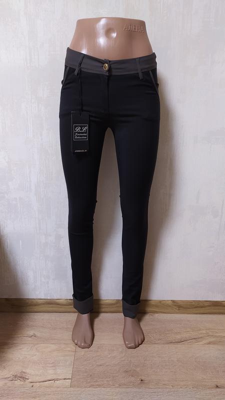 Розпродаж залишків!!! Класичні брюки, чорного кольору, з кавовими вставками. Середня посадка, тканина тягнеться. Розмір 25(додаткові заміри на вимогу)