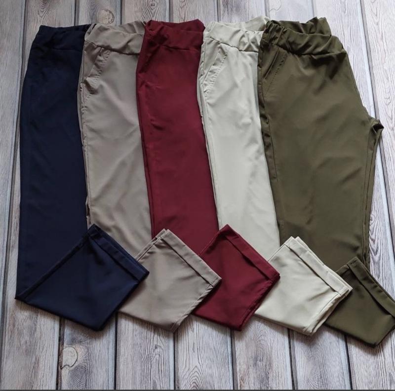 брюки з тканини софт,не парить. Посадка висока,тканина трошки тянеться. колір марсала, пояс на широкій резинці.