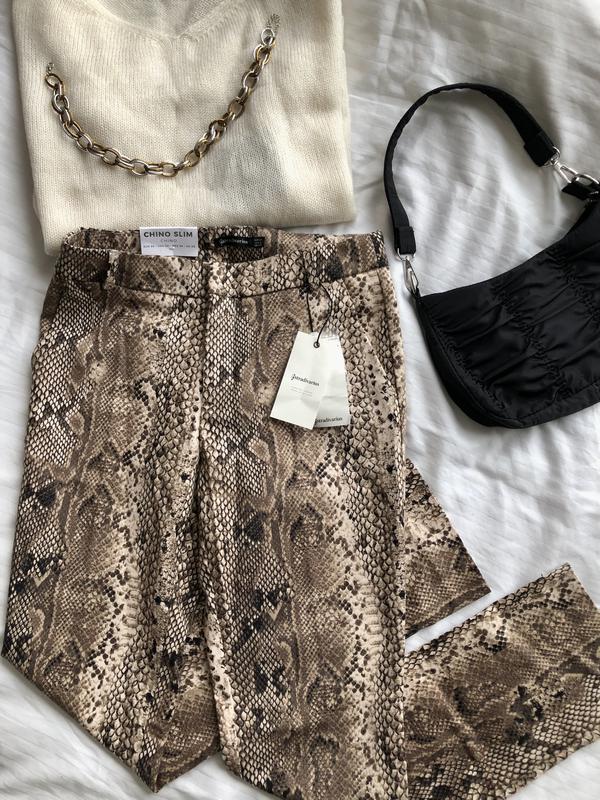 Штани зміїного принту бренду Stradivarius. З кишеньками, на замочок.