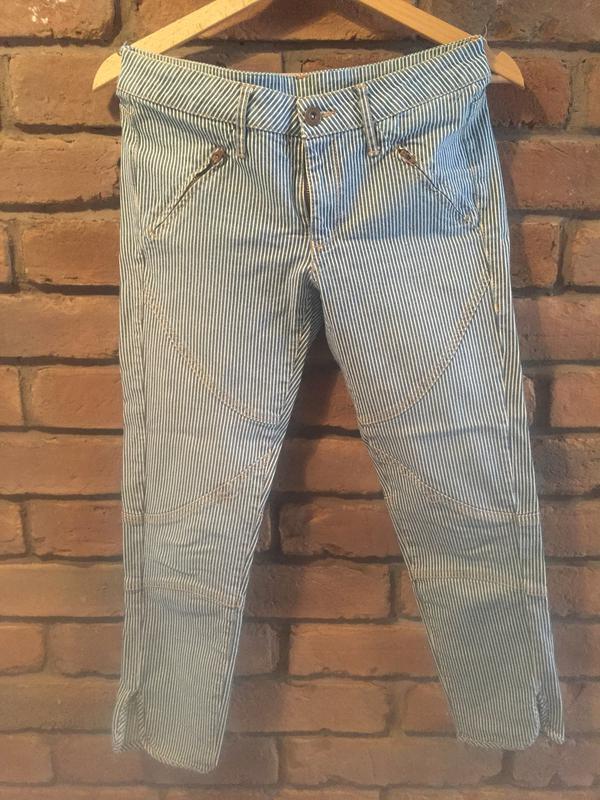Штаны брюки манго. 38 размер В тоненькую голубую полоску Укороченные