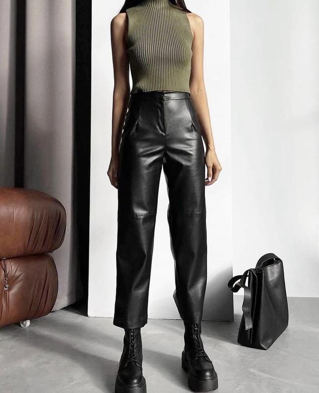 Шкіряні штани Тканина:еко-шкіра на флісі Ціна:599 Розміри:42-44;44-46