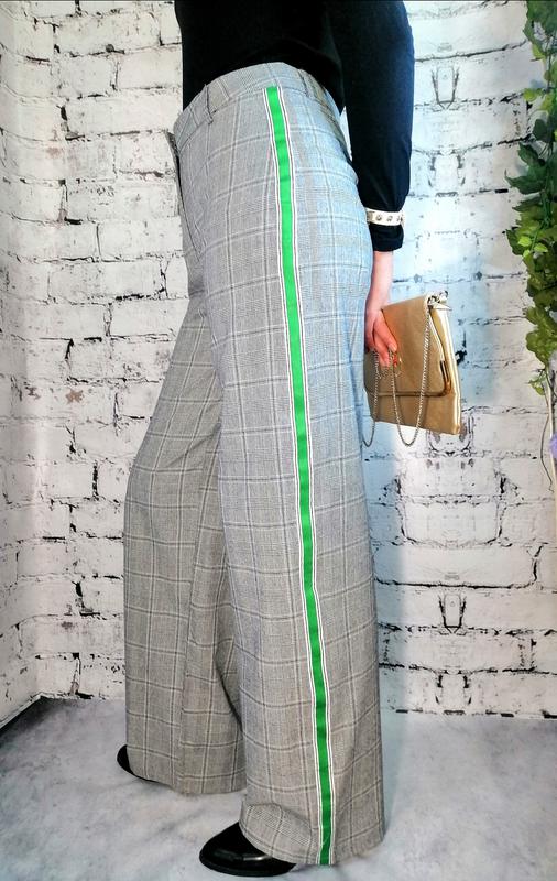 Новые. Брюки палаццо в клетку принц уэльский. По бокам зелёные лампасы, закос под Gucci. Идеальный крой, высокая посадка. Качество супер. Размер: UK - 12 EUR - 40 Наш - 46 Буквенный - M-L Дополнительные замеры по запросу. Оплата на карту. Доставка за счёт покупателя. Наложенный платёж возможен по предоплате 150грн. При переводе всей суммы единоразово вы экономите на комиссии за перевод денег. Прежде чем сделать заказ выберите кнопку написать продавцу обсудим все интересующие вас вопросы.