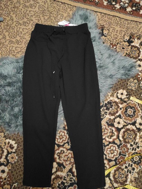 нові, з низу завужені,пояс на резинці висока посадка