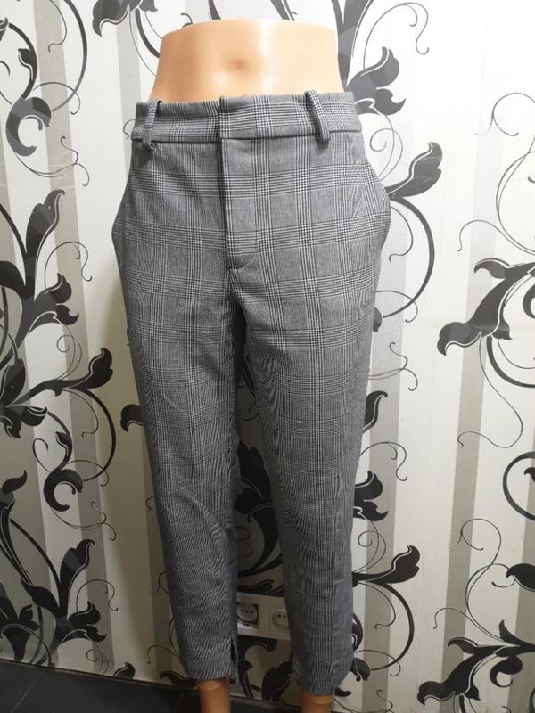 Брюки короткие в клетку, задняя штанина удлиненная, размер 36