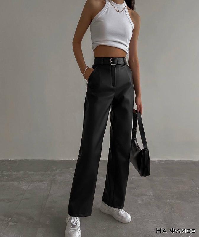 Брюки клёш на флисе😍 Мод. b 667 Размеры: 42-44, 44-46, 46-48 Ткань: экокожа на флисе Цвет: чёрный Длина изделия 103см Первый размер ОБ до 92см Второй размер ОБ до 99см Третий размер ОБ до 105см 💥 (пояс плюс 50грн) Наличие товара всегда 100%👌