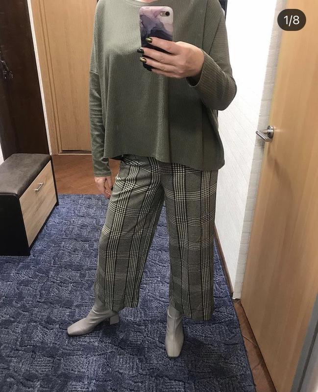Кюлоти у клітинку, приємні на дотик , щільна тканина , але гарно тягнеться . Довжина -91см; піт 37-53; поС 56-66; широкі колоші -29см