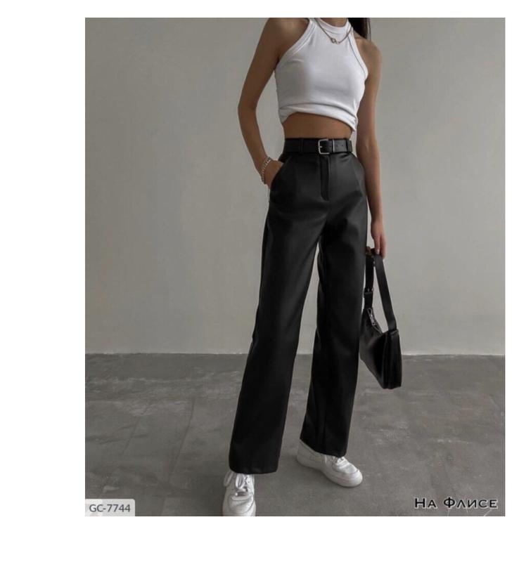 Размеры: 42-44;44-46;46-48 Кожанные брюки клёш на флисе Ткань: экокожа на флисе Цвет: чёрный (плюс пояс 20грн)