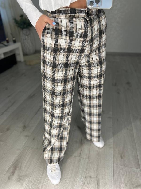 Брюки тёплые из клетки тёплого 😍 Безумно красиво и стильно 😎 Высокая посадка , с резинкой на поясе сзади , очень удобно на талии 😜 Ткань: пальтовая клетка Размер: 42 44 46 48 Цена : 685 грн 😎 Замеры брюки палаццо ( сзади на резинке) Длина : 105см Длина из Внутренней: 81см 42 : от :до 68 ; об : до 98 44: от : до 74; об : до 104 46: от : до 80; об: до 108 48 : от : до 86 ; об : до 112