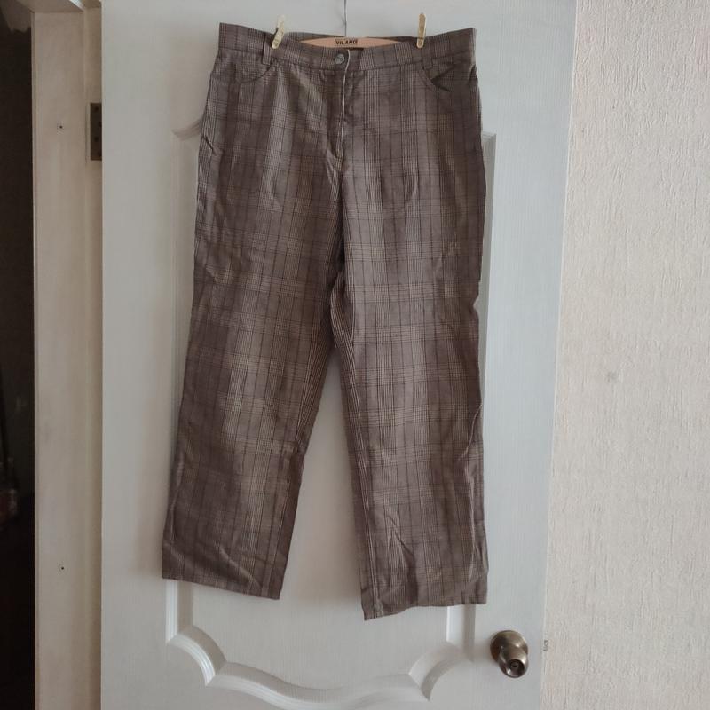Штани. Основной цвет желтокоричневые. П. о. т.п. 43 см. П. о. верха штанины 34 см, колено 25 см, низ 22 см. Длина 96 см.