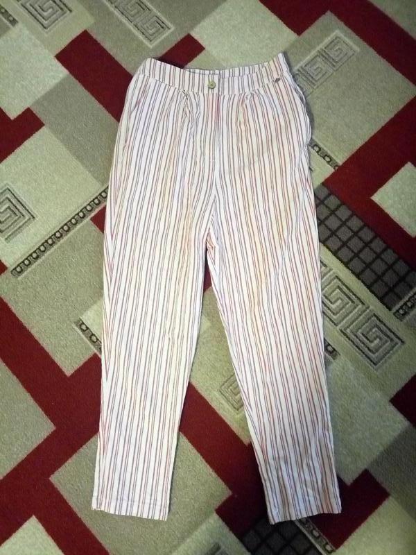 ПОТ 33см. ПОБ 44см. Посадка спереди 34см., сзади 3)см. Длина 90см., по внутреннему шву 58см. Ширина штанины внизу 14см.