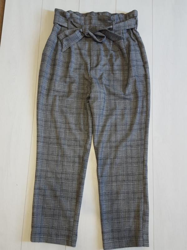 дуже гарні якісні штани.з високою посадкою.з поясом.з кишенями.з переди 2складки. посадка з переди 36 см пот 39 см побіди 54 див. довжина 95 см крок 65 см ширина низу штанини 18 див.