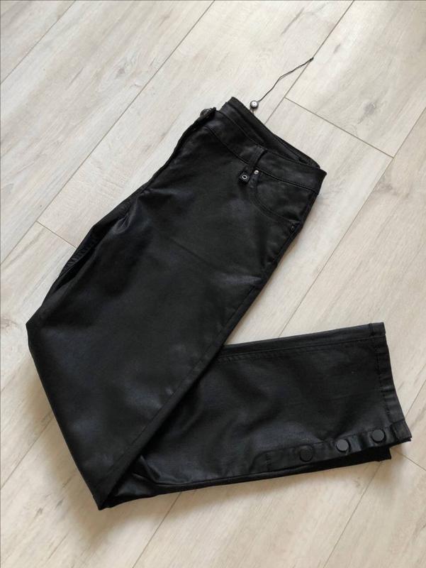 Брюки укороченного фасона с акцентными пуговицами по низу штанин. Состав ткани- 68%хлопок, 30 % полиэстер, 2% эластан. ПОТ 40 см ПОБ 49 см длина 92 см, длина по внутреннему шву 67 см посадка 23/36 см