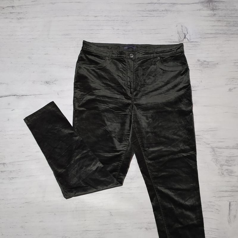 Фирменные штаны M&S original Как новые, дефектов или нюансов нет. Цвет как на фото. Размер 18 Длина изделия 107см Посадка 36см ПОТ 47см ПОБ 56см Полуобхват штанины внизу 15см 65% хлопок 33% модал 2% эластан