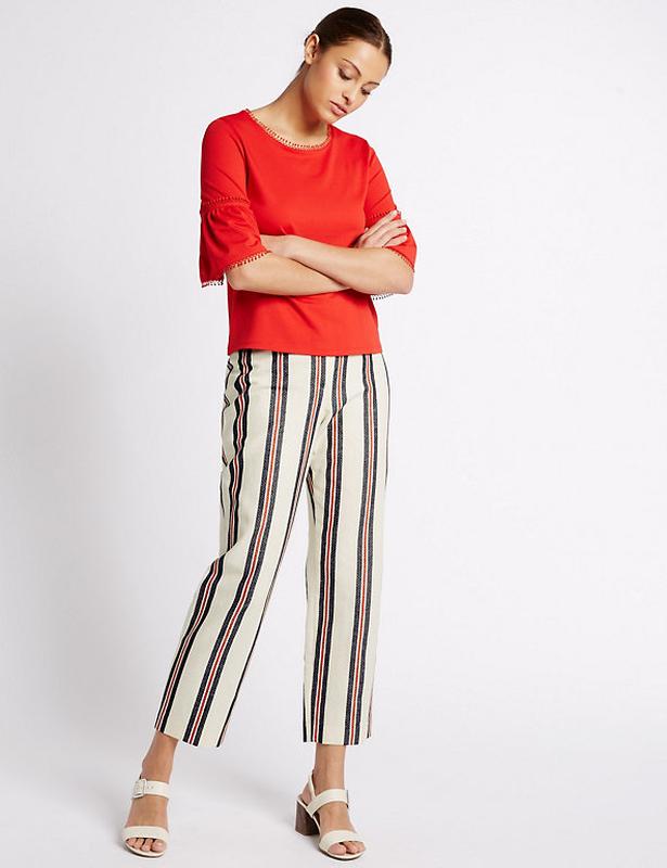 Брюки прямого кроя в полоску с высоким содержанием хлопка