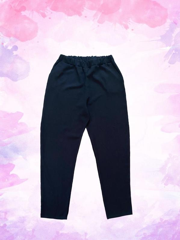 Брюки на резинке, с карманами. Никаких дефектов. Замеры: Размер 36 ПОТ 34-40 см ПОБ 46 см Длина по внутреннему шву 64 см Длина по внешнему шву 93 см Высота посадки 31 см